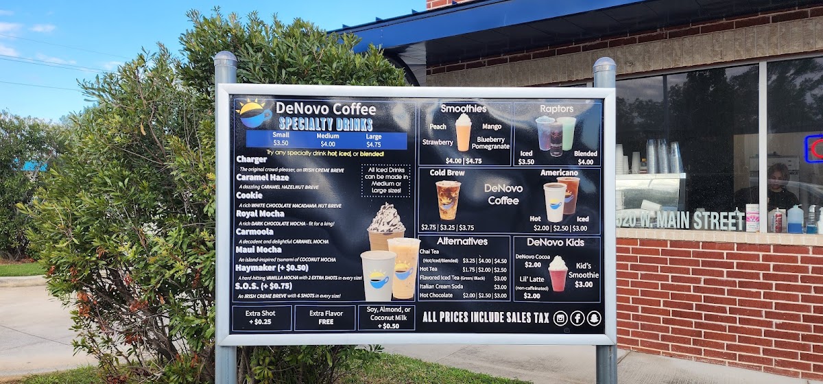Whether you're grabbing a quick drive-thru coffee or enjoying a leisurely moment inside, Denovo Coffee is a must-visit for coffee enthusiasts!